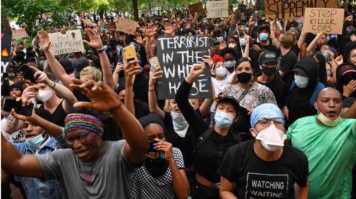 นิวยอร์ก ไทมส์ รายงานว่า ประธานาธิบดีโดนัลด์ ทรัมป์ ถูกนำตัวไปยัง หลุมหลบภัยหลังจากกลุ่มผู้ประท้วงหลายร้อยคนได้รวมตัวกันที่บริเวณด้านนอกอาคารที่พักของฝ่ายบริหาร โดยผู้ประท้วงบางคนได้ขว้างปาก้อนหิน และพยายามทำลายแผงกั้นของเจ้าหน้าที่ตำรวจ