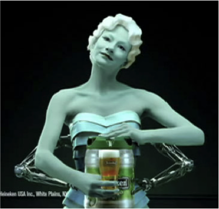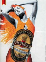 ในภาพนี้ เธอกลายมาเป็นขวดเครื่องดื่ม Michelob.