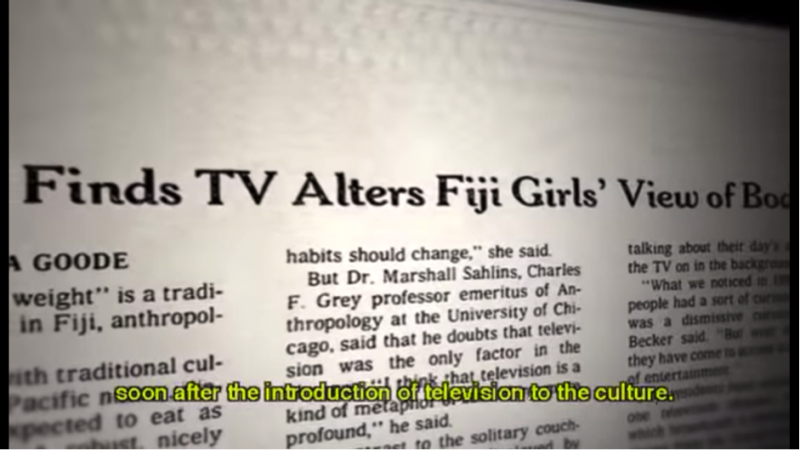 เจ้าของผลงานวิจัยที่มีชื่อเสียง แอน เบกก้า (Anne Becker) ได้พบการเพิ่มขึ้นอย่างกะทันหัน ของโรคการกินผิดปกติ ในเด็กสาวของเมือง ฟีจี ไม่นานหลังจากที่โทรทัศน์ได้ถูกนำเสนอเข้าสู่วัฒนธรรมของพวกเธอ