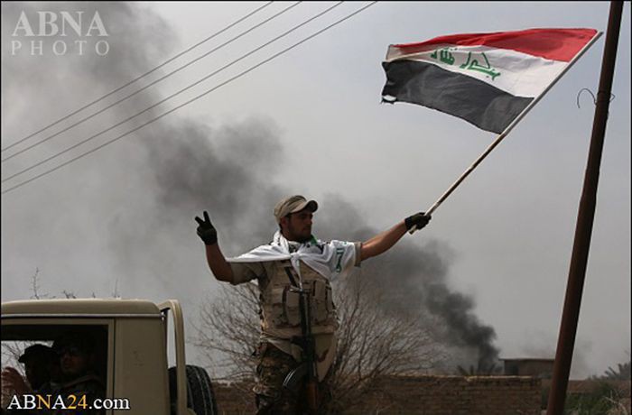 รายงานระบุว่าทหารและนักรบชาวชีอะห์และซุนนีย์ซึ่งเป็นพันธมิตรได้ชักธงชาติอิรักที่สถานีตำรวจแห่งหนึ่งในติกริต